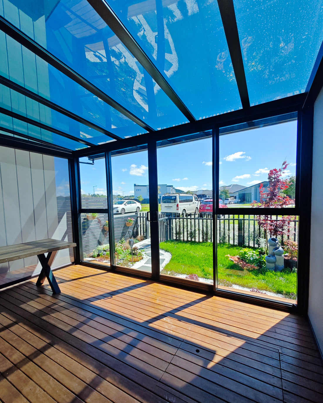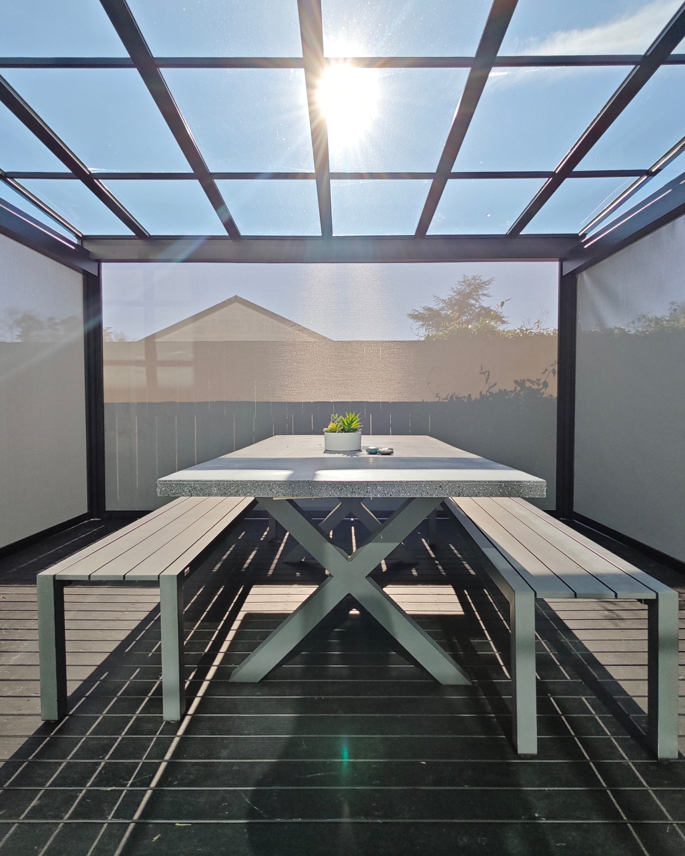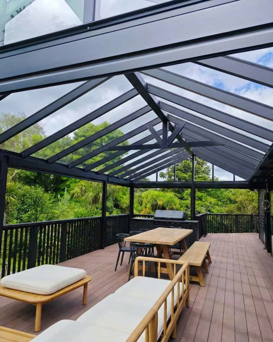 A5 System Flat Pergola | Featuring 4mm Crystal-Clear PC Paneling